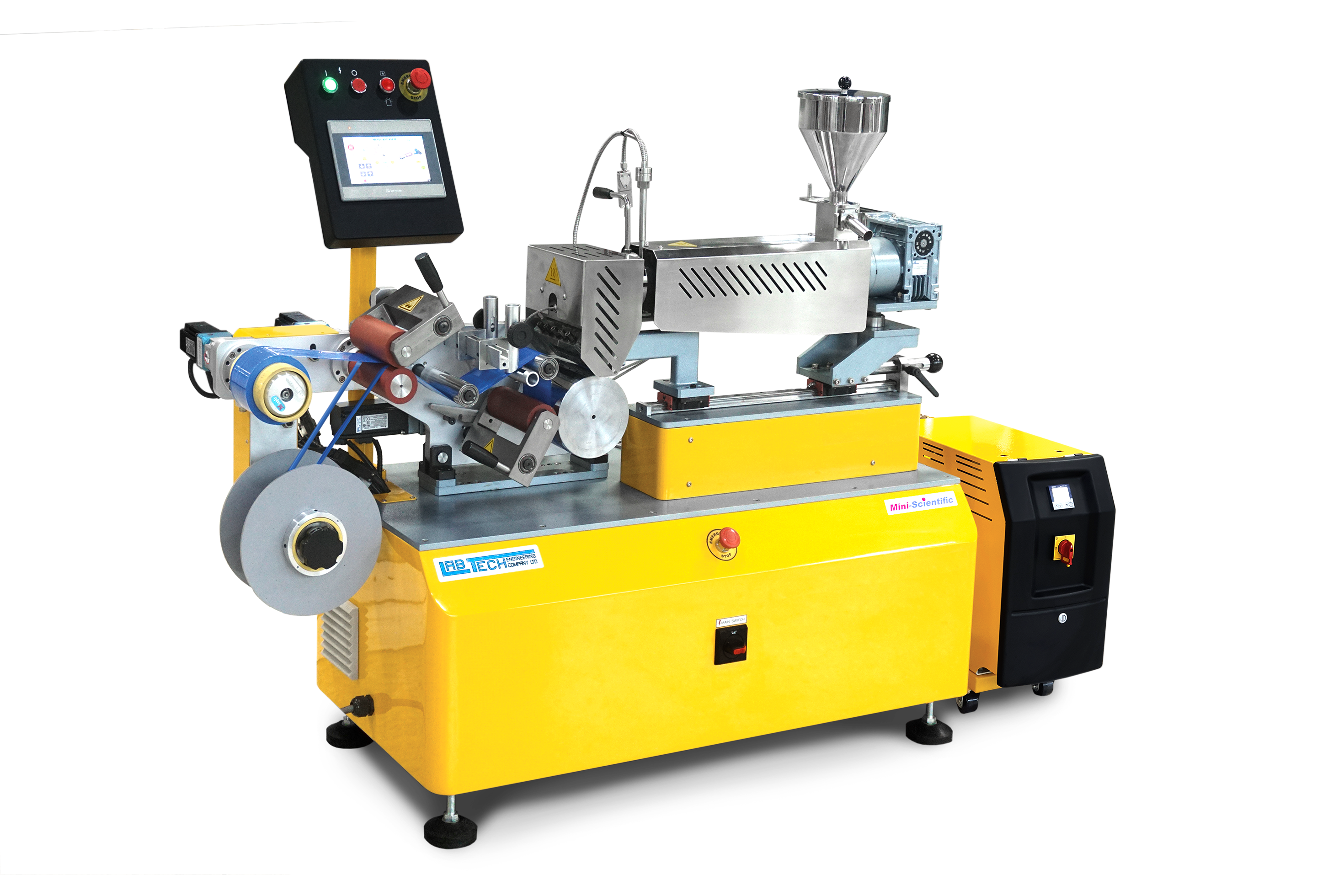 Labtech Engineering is committed to the development of our New Scientific Mini Single-Layer Film and Sheet Line Type LMCR-150 as a further innovation for professional laboratory needs at an affordable cost. This mini cast film holds a lot of possibilities to achieve excellent developments of plastic films for many applications. The installations are completed with mini sizes of hopper, extruder, die, chill roll, nip rolls, and wind-up. The whole chill roll assembly is mounted on a bench cabinet where the whole process is accommodated to occupy a minimum floor space of 1.5m x 0.7m and height of 1.2m. The sub-cabinet has a sliding base to hold all the electric components inside.