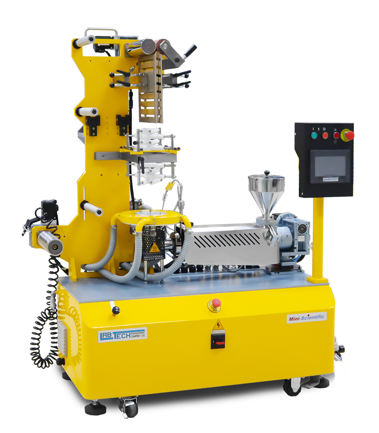 Our New Scientific Mini Single-Layer Blown Film Line is a cost-effective and practical choice for research in film-blowing applications. Designed with compact sizing, this mini line occupies a minimum floor space. It features a compact design with a mini-sized 16mm single-screw extruder that provides consistent melt output, a spiral mandrel with a 25mm annular die lip diameter for uniform blown film production, and an easy-to-use computerized LCD touchscreen control panel. The blown film can achieve a maximum layflat width of 180mm, making it suitable for a wide range of applications.