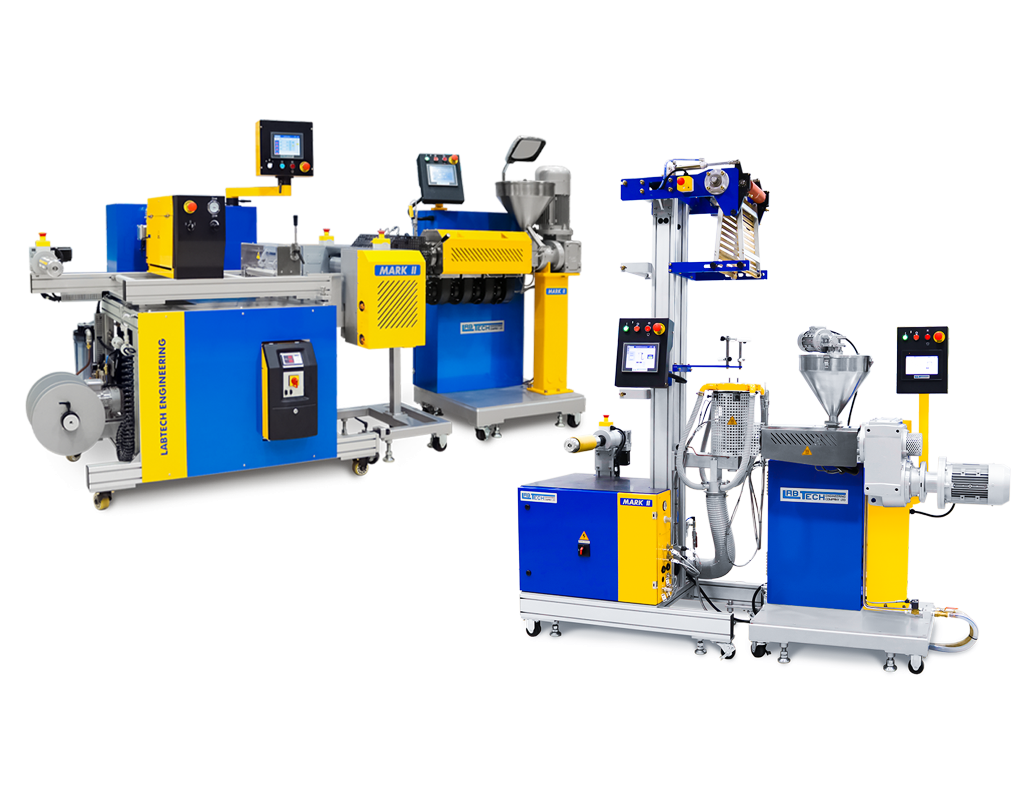 Labtech has developed a range of twin screw extruders in many sizes and for all kind of compounding applications. These extruders enable productions of a broad range of polymer compounds and from a minute output of only a few grams to production scale up to 250 kg/hr. The twins are available with a multitude of feeding system, from volumetric to gravimetric and with a lot of downstream pelletizing systems